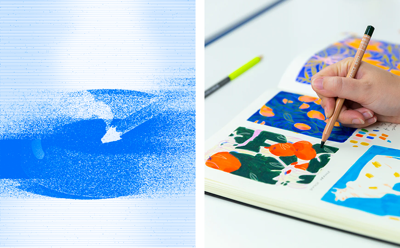 Работа над зином начинается с проработки идеи и основных смыслов, после чего они развиваются в полноценный сценарий: последовательность страниц, ритм подачи и ключевые визуальные акценты. Такой подход помогает сделать зин целостным, а каждая страница становится частью истории, которая удерживает внимание и создаёт уникальный образ вашего бренда.